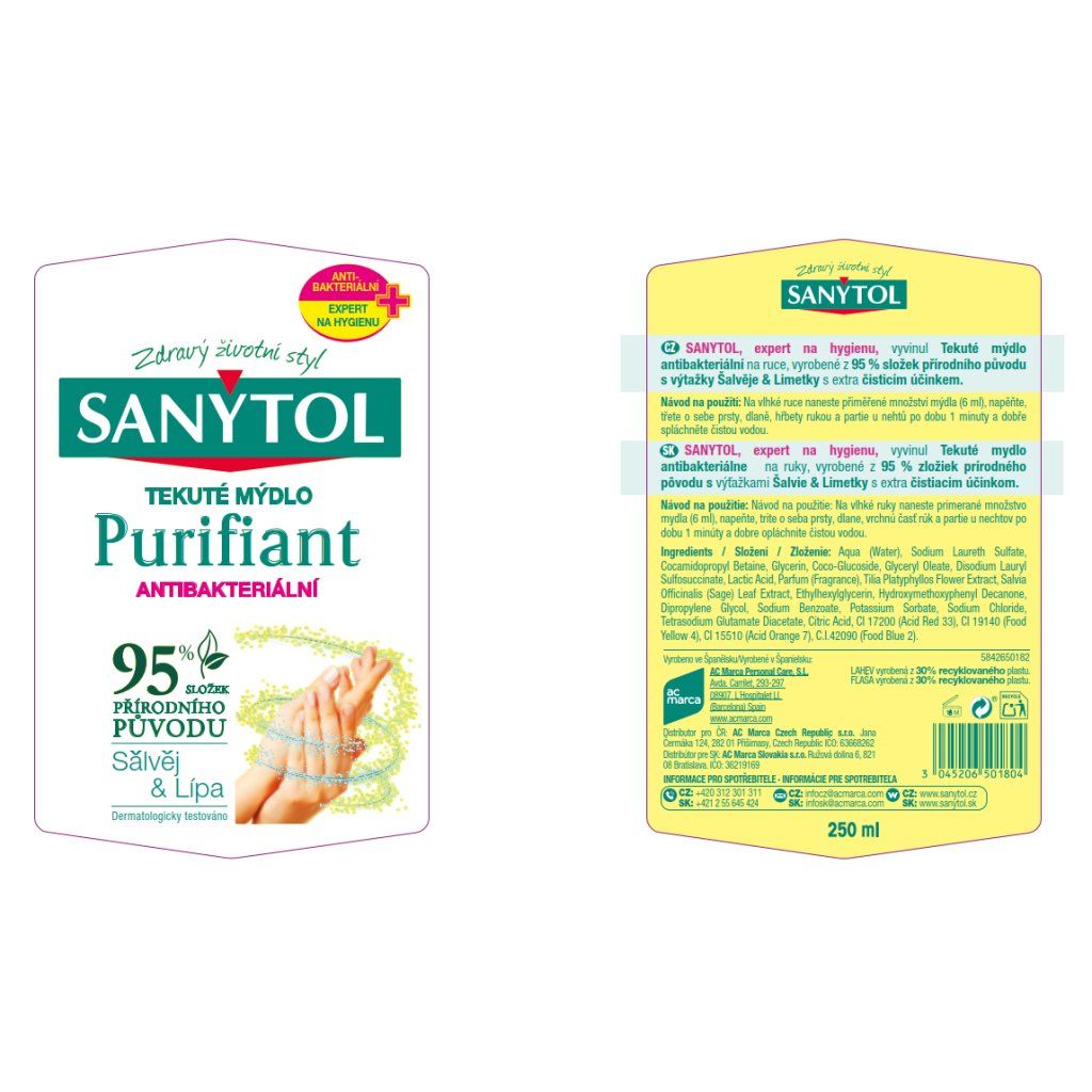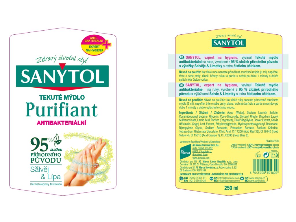 SANYTOL Purifiant Tekuté mýdlo antibakteriální 250 ml