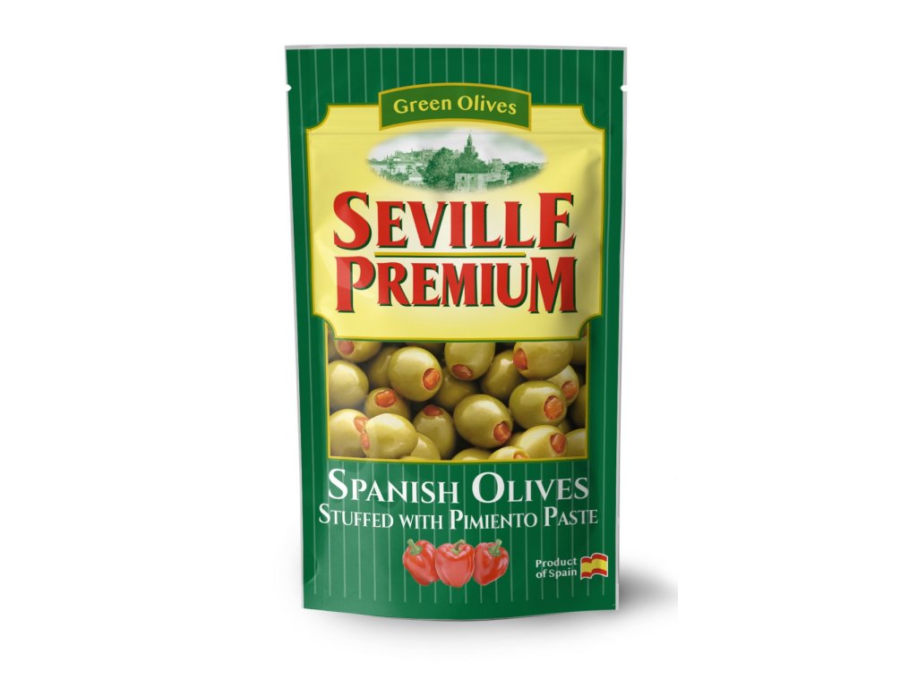 SEVILLE PREMIUM Olivy zelené s paprikou 200 g