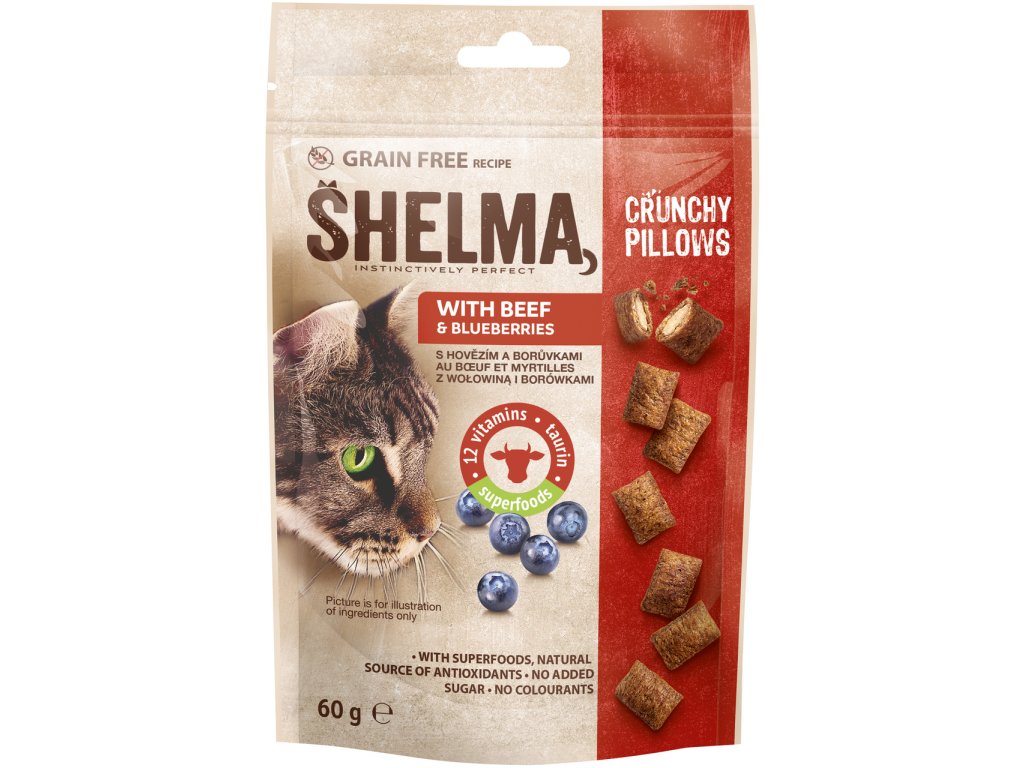 - Shelma snack kočka polštářky hovězí/borůvka 60g