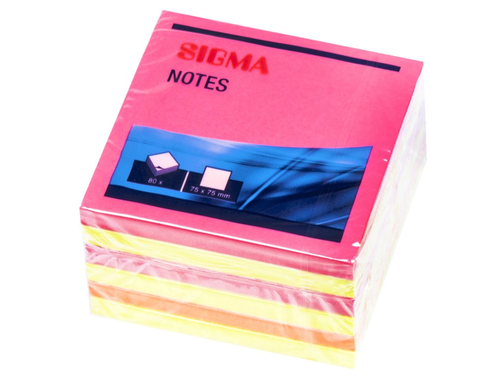 SIGMA Bloček samolepicí 75 mm 80 lístků neon 6 ks