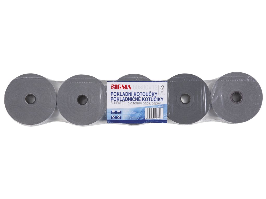 SIGMA Kotoučky pokladní termocitlivé Blue4est 80/80/12 5 ks