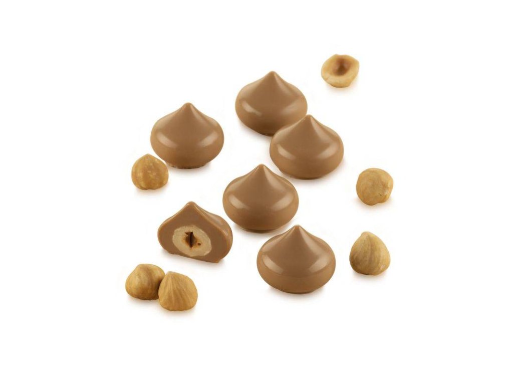 Kvalitní silikonová forma na výrobu čokoládových pralinek. Rozměr formy: cca 21 x 10 cm Průměr pralinky: 2,8 x 2,4 cm Objem jedné pralinky: 8,5 ml Použití: Do formy nalijte rozpuštěnou čokoládu a nechte v lednici ztuhnout. Lze použít i na fondánovou hmotu, isomalt a želatinu.Doplňkové parametry