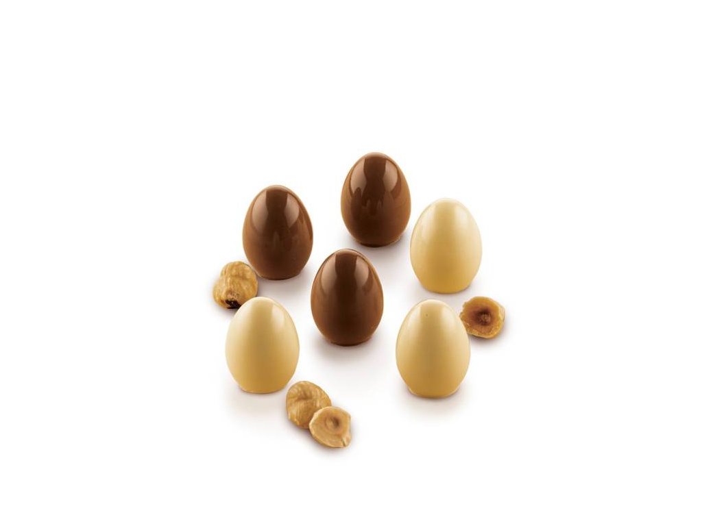 Kvalitní silikonová forma na výrobu čokoládových pralinek. Rozměr formy: cca 21 x 10 cm Rozměr vajíčka: cca 2,3 x 3 cm Použití: Do formy nalijte rozpuštěnou čokoládu a nechte v lednici ztuhnout. Lze použít i na fondánovou hmotu, isomalt a želatinu.Doplňkové parametry