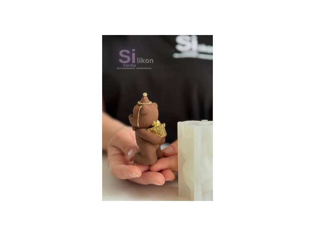 SilikonForms silikonová forma 3D Medvídek s dárkem sfoukávající svíčky ▹
