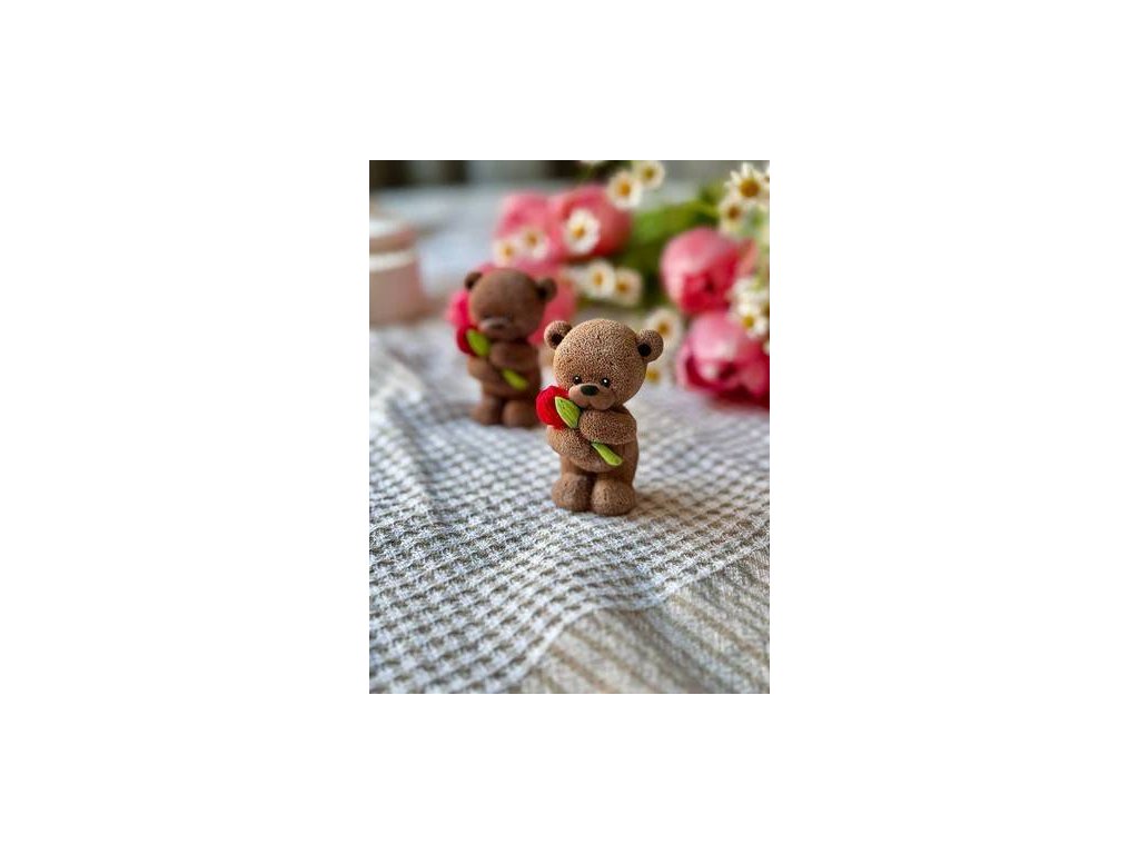 Roztomilá forma ve tvaru medvídka s růží, ideální pro marcipán, modelovací hmotu i čokoládu. Vyrobena z kvalitního potravinářského silikonu – pružná, odolná a snadno omyvatelná. Perfektní pro dortové dekorace a sladké dárky. Rozměry medvídka: 7 x 5 x 5 cmDoplňkové parametry