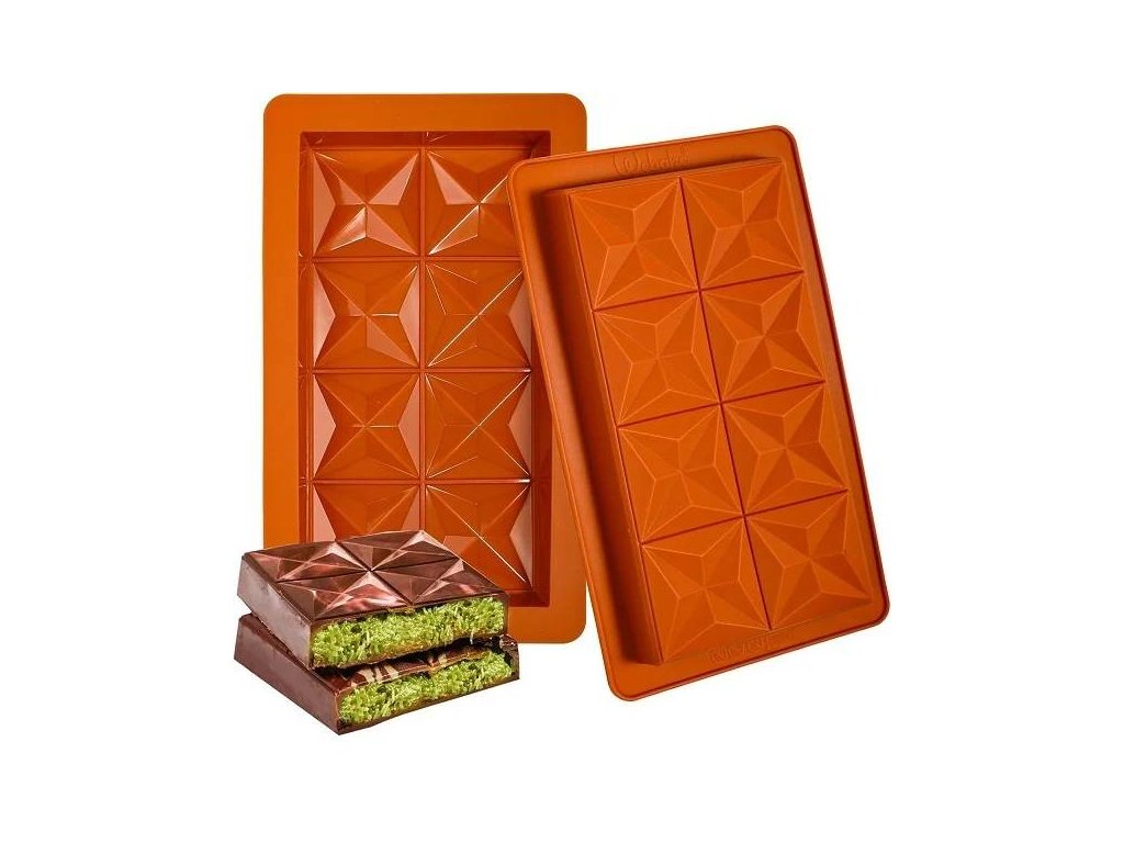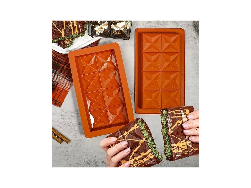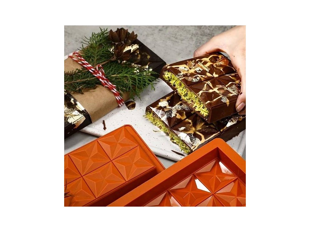 Silikonová forma na výrobu dubajské čokolády. Rozměr tabulky: 22 x 11 x 1,5 cm Použití: Do formy nalijte rozpuštěnou čokoládu a nechte v lednici ztuhnout. Lze použít i na fondánovou hmotu, isomalt a želatinu.Doplňkové parametry
