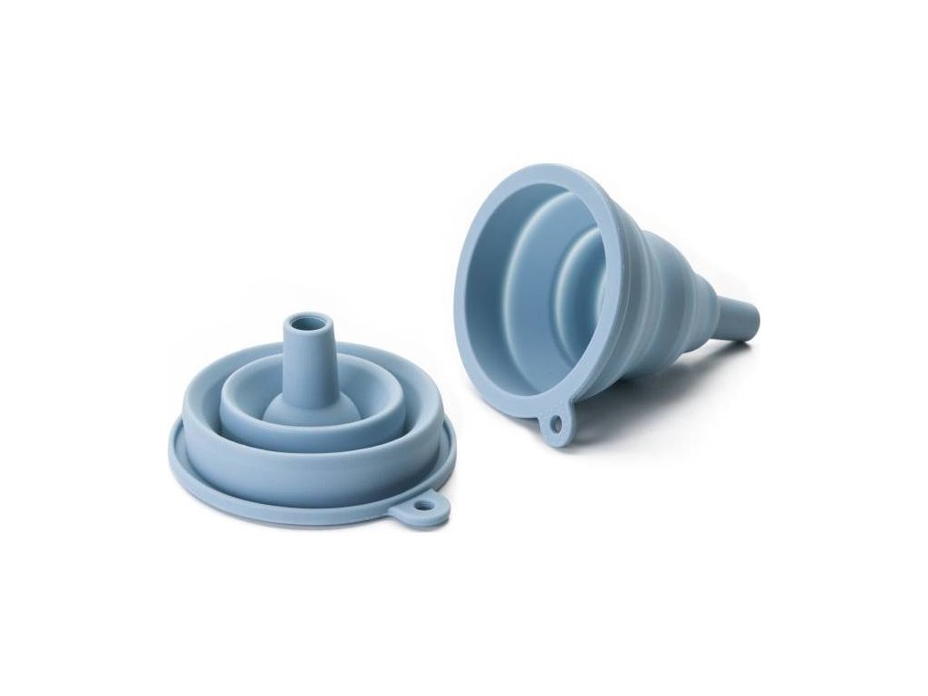Praktický trychtýř z odolného silikonu modré barvy.Doplňkové parametry