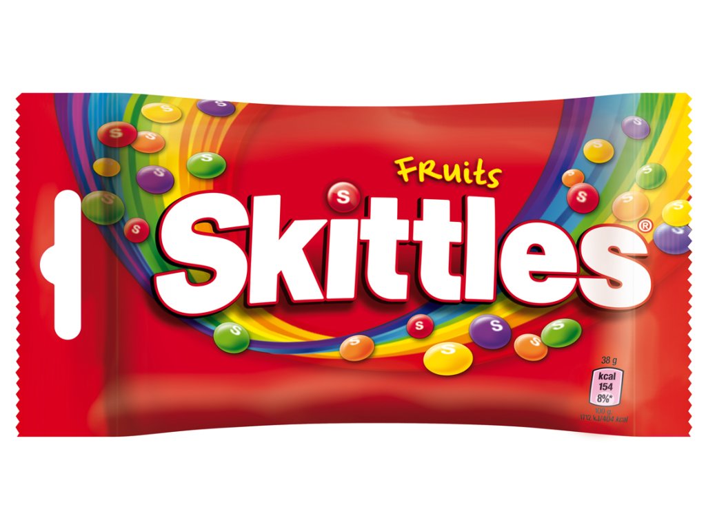 - Skittles Fruits 38g ŽVÝKACÍ BONBÓNY V KŘUPAVÉ cukrOVÉ KRUSTĚ S OVOCNÝMI PŘÍCHUTĚMI.