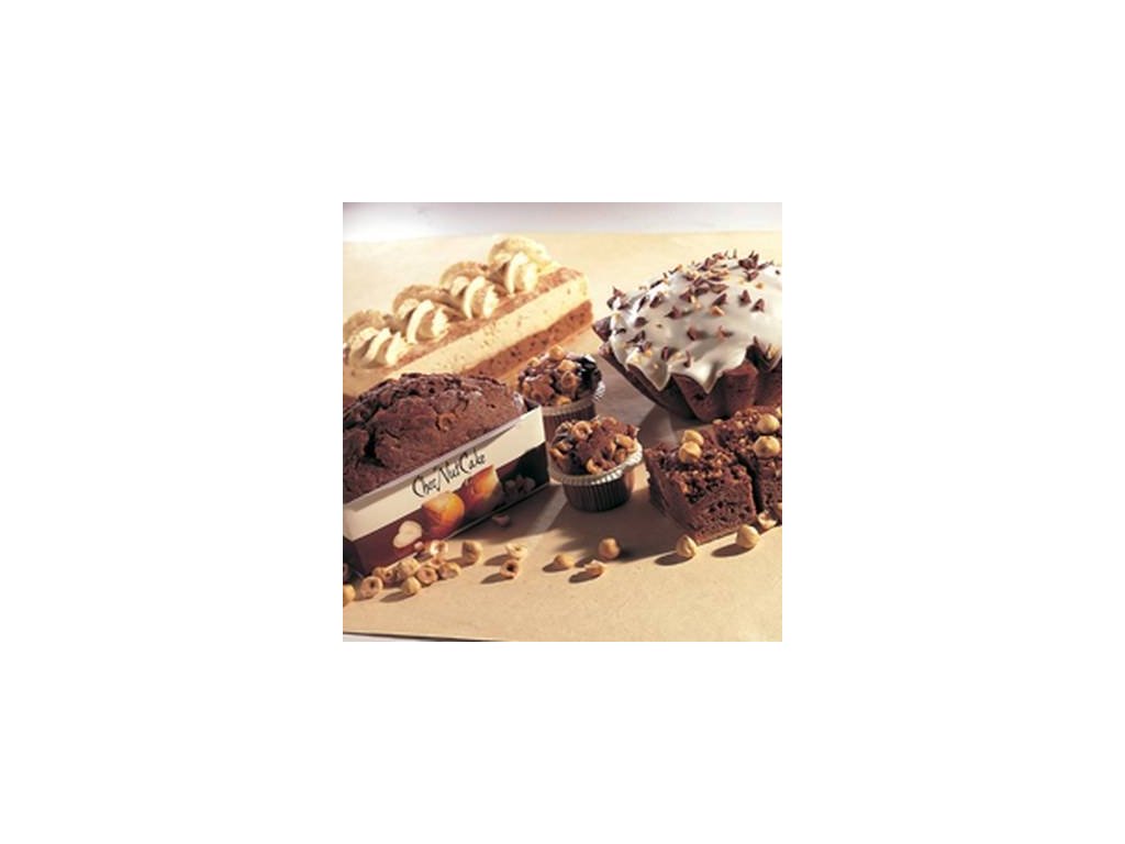Směs s celými jádry pražených lískových oříšků pro výrobu třených hmot. Světle hnědá třená hmota s chutí mléčné čokolády, vhodná pro korpusy nebo chlebíčky pečené v tvořítkách (cakes). Použití: 500 g ChocNut Cake, 100 g vaječná melanž, 100 g voda. Všechny suroviny mícháme na 1. rychlostní stupeň po dobu 4 min. Složení: cukr, mouka pšeničná, palmový tuk sušený (palmový olej, glukózový sirup, mléčná bílkovina), čokoládové plátky (cukr, mléko plnotučné sušené, kakaová hmota, kakaové máslo, syrovátka, emulgátor E322 (sója)) (7%), lískové ořechy (7%), olej rostlinný (řepkový), kakaový prášek se sníženým obsahem tuku, glukózový sirup sušený, škrob bramborový, syrovátka sušená (mléko), kypřící látka E450i, kypřící látka E500ii, sůl jedlá, aroma, kypřící látka E336, zahušťovadlo E415 Nutriční hodnoty ve 100 g: energie 2039 kJ/485 kcal, tuky 24,86 g (z toho nasycené 7,97 g), sacharidy 62,61 g (z toho cukry 37,29 g), vláknina 1,73 g, bílkoviny 5,01 g, sůl 1,36 gDoplňkové parametry