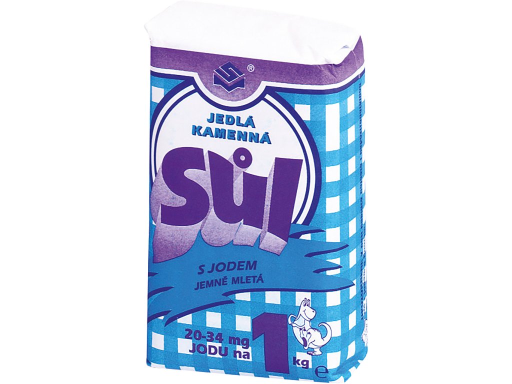- jedlá sůl kamenná, jodičnan draselný obsah jodu: 20 - 34 mg/kg