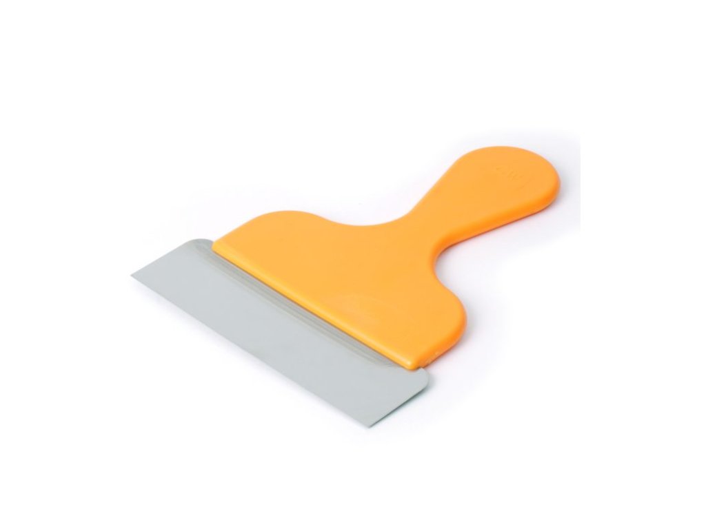 Nerezová špachtle s polypropylenovou rukojetí ideální na stírání čokolády z forem na pralinky o šířce 13 - 14cm