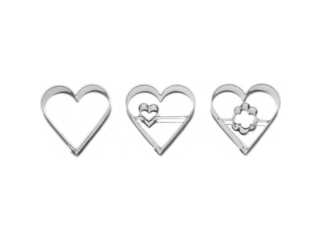 Sada tří vykrajovátek s různými středy ve tvaru srdce.Doplňkové parametry