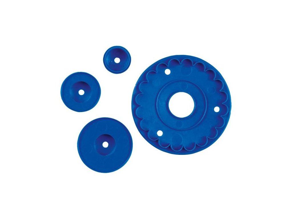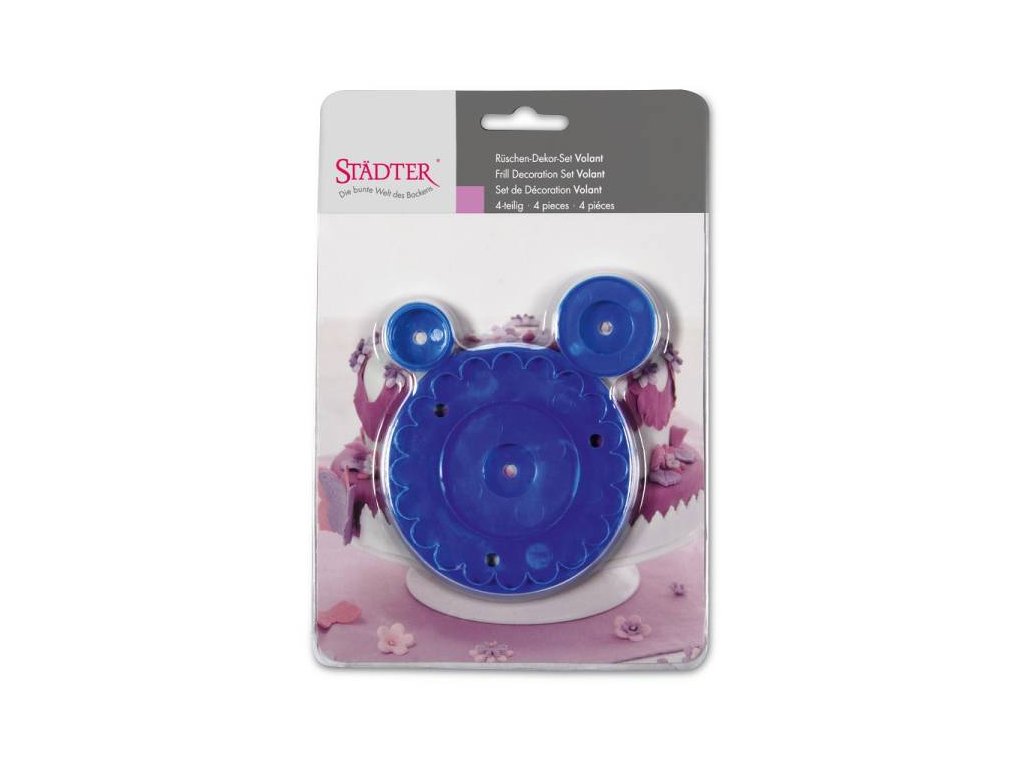 Průměr: 8,5 cm Průměry středových vykrajovátek: 2,1 cm, 3,5 cm a 4,7 cm Sada obsahuje 1 základní vykrajovátko s vlnitým okrajem a 3 vykrajovátka na středy, které umožňují vytvořit volánky s různou šířkou.Doplňkové parametry