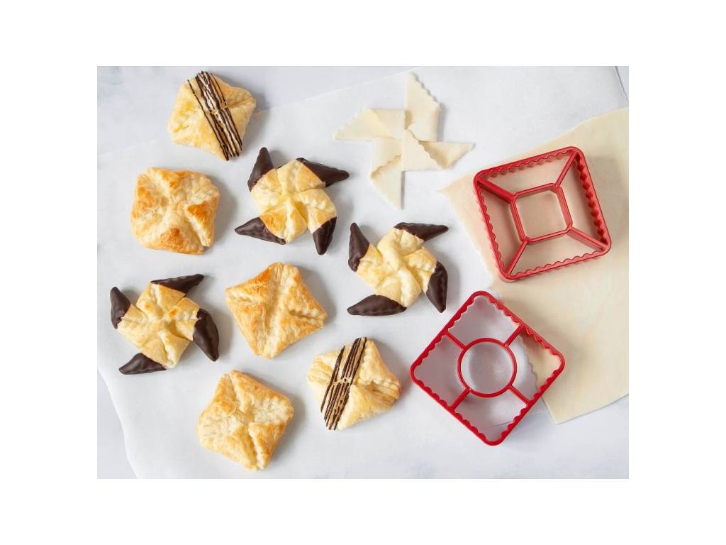 S těmito vykrajovátky snadno a přesně vykrojíte tvary na taštičky z listového těsta. Doprostřed dejte kousek náplně, přes náplně přehněte okraje, potřete trochou vajíčka a dejte do trouby. Materiál: plast Rozměr: 8,4 cmDoplňkové parametry