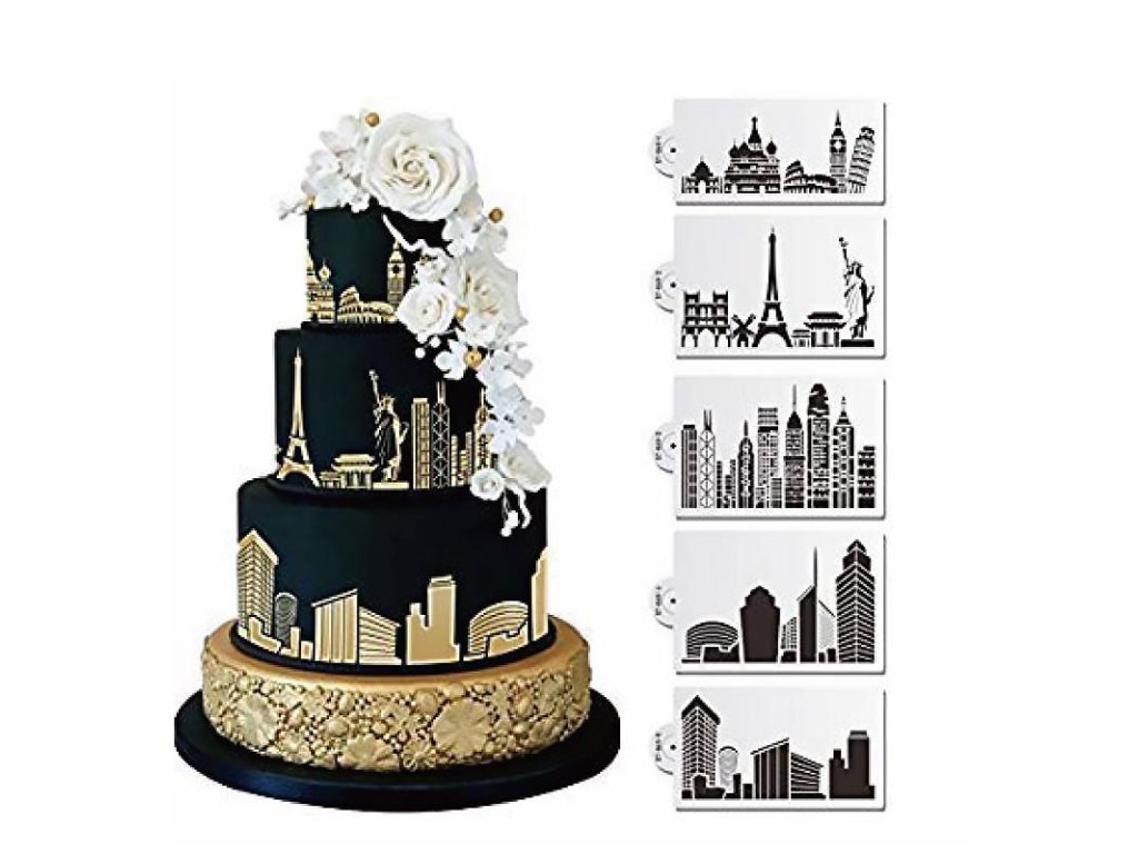 Cukrářské potřeby a suroviny pro sladké pečení.Produkt pro domácí cukráře: Stencil šablona města 5ks - Cakesicq ,