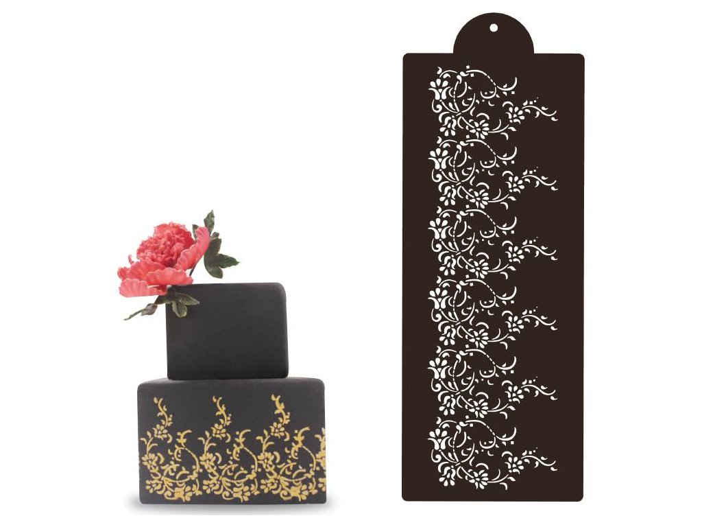 Stencil šablona na dort - květiny 30x12cm - Cakesicq | Cukrářské potřeby