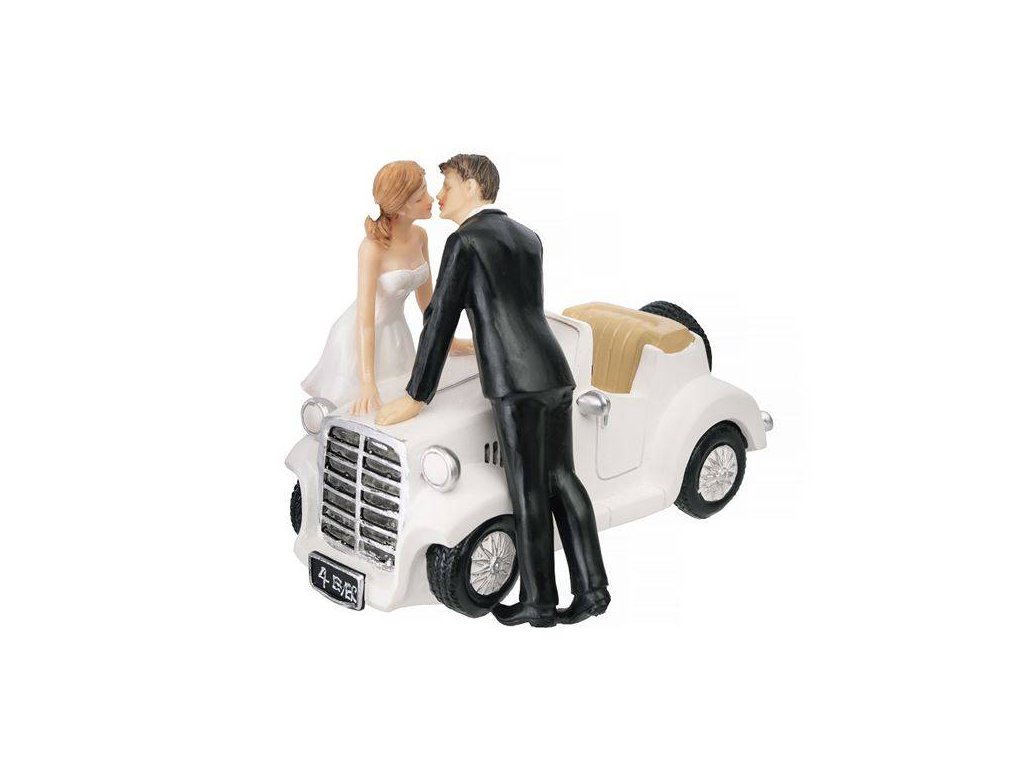 Svatební figurka Novomanželé s autem 18 cm ▹