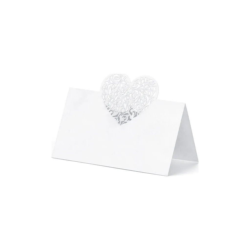Jmenovky na stůl stavební 10ks 9 x 6.5cm bílé srdce - PartyDeco | Cukrářské potřeby