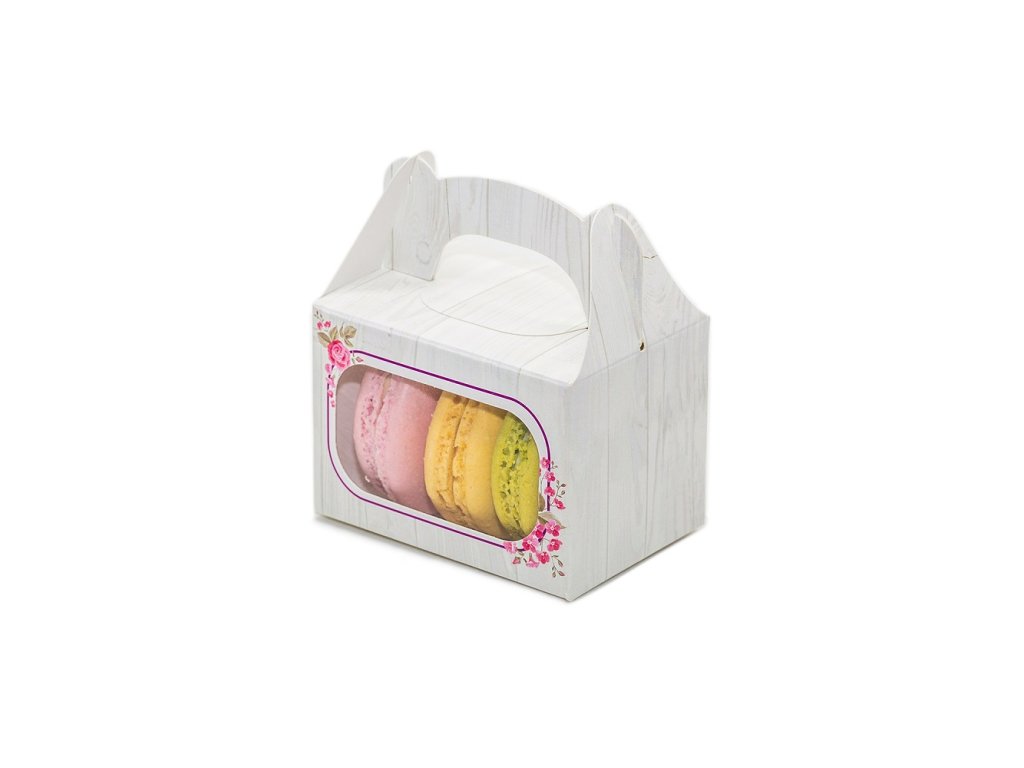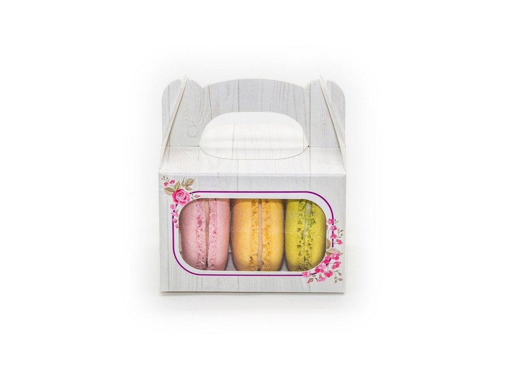 Svatební krabička na makronky s nádherným květinovým vzorem. Rozměr: 8 x 5,7 x 5,7 cm