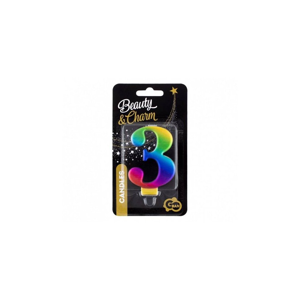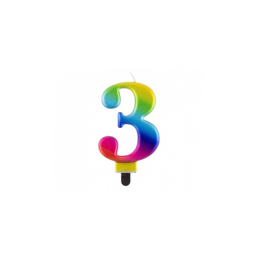 Svíčka - číslice "3" duhová 8cm 1 ks