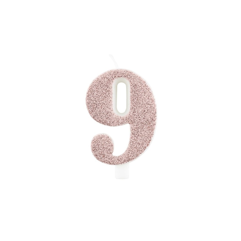 Nádherná narozeninová svíčka číslo 9 s metalickým nástřikem