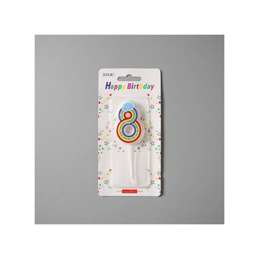 Svíčka duhová s obláčkem číslo 8 ▹