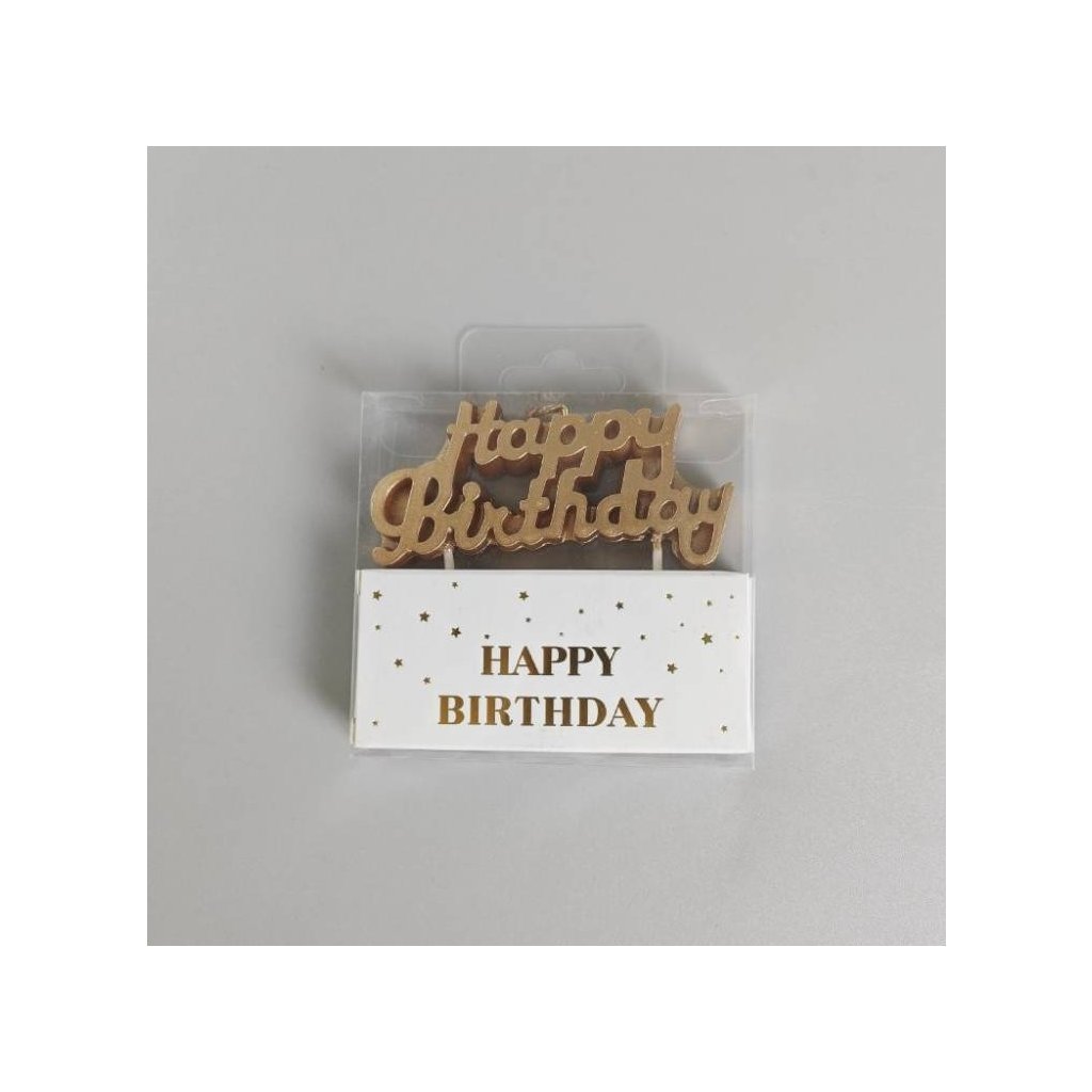Narozeninové svíčky na dort ve tvaru nápisu "Happy Birthday". Svíčky skvěle ozdobí váš narozeninový dort. Vhodné na jakýkoliv druh oslavy nebo party. Rozměr: 8 x 3 cmDoplňkové parametry
