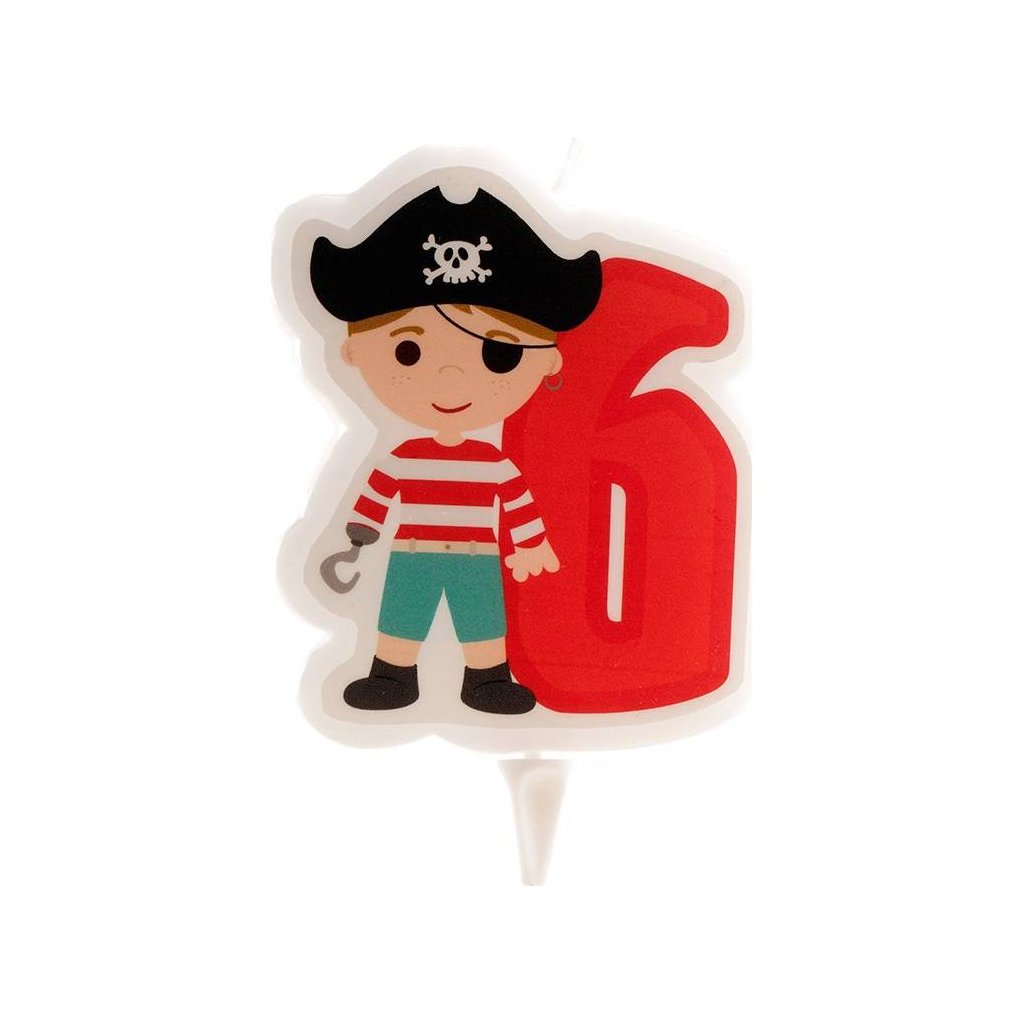 Svíčka na dort ve tvaru Piráta s číslem 6. Výška 7 cm.Doplňkové parametry