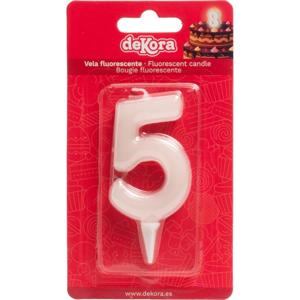 Svíčka na dort číslo 5 svítící ve tmě 6cm - Dekora | Cukrářské potřeby