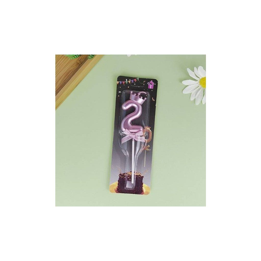 Svíčka růžovo-zlatá s korunkou číslo 2 ▹