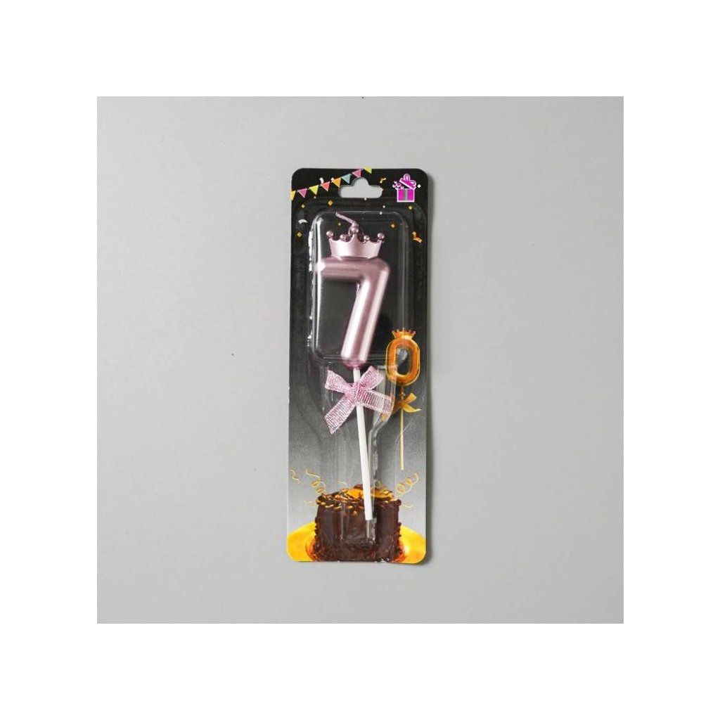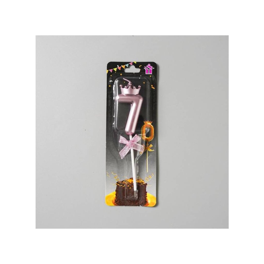 Svíčka růžovo-zlatá s korunkou číslo 7 ▹