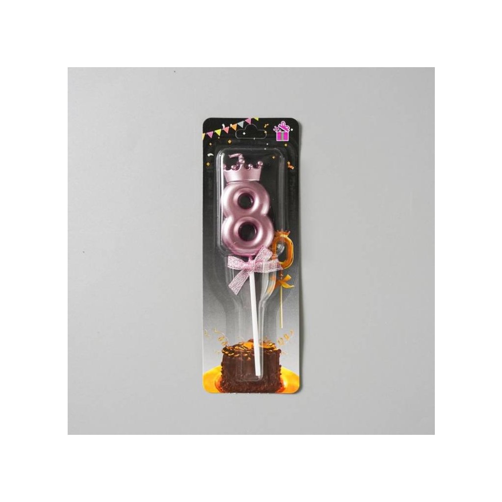 Svíčka růžovo-zlatá s korunkou číslo 8 ▹
