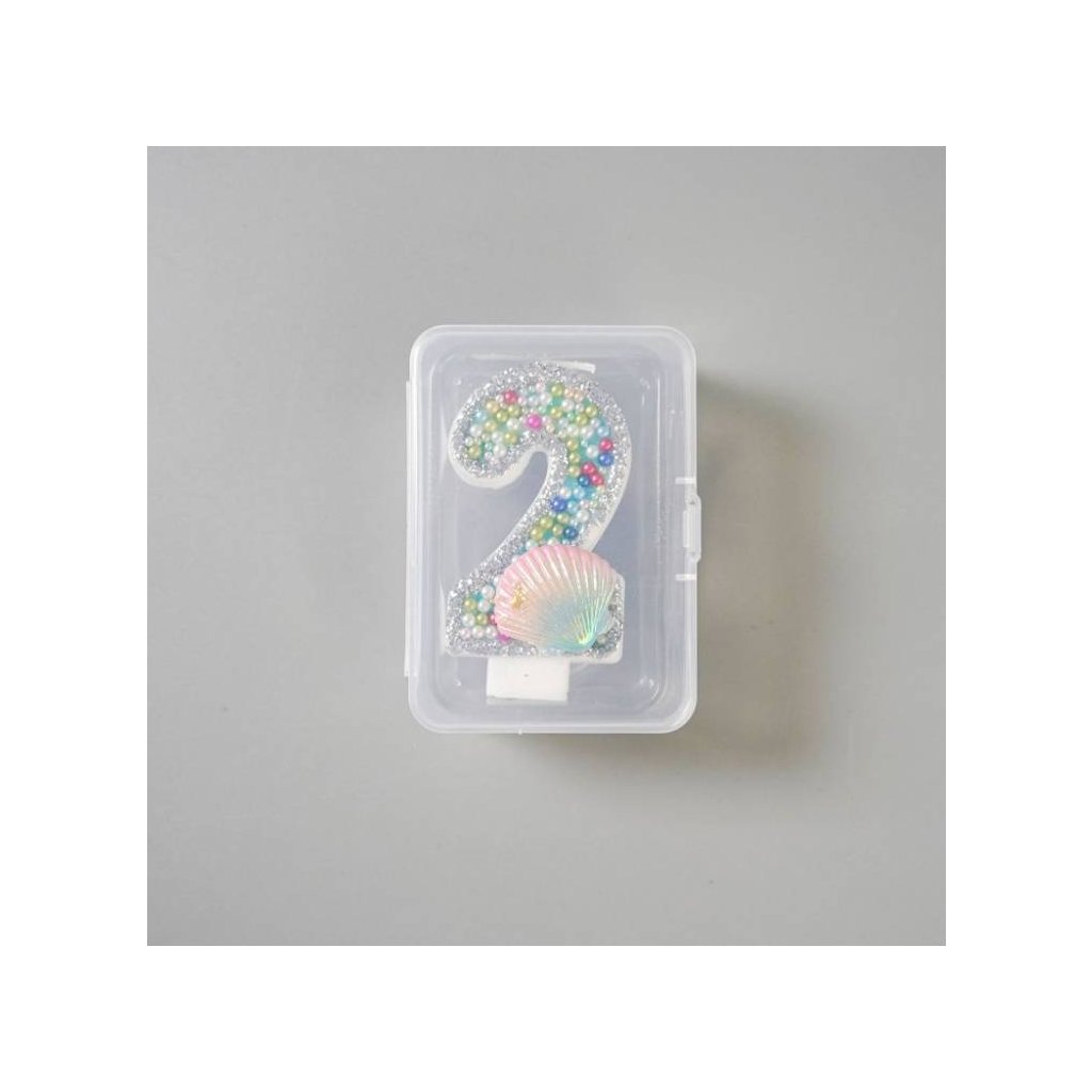 Svíčka s perlami a mušlí Oceán číslo 2 ▹