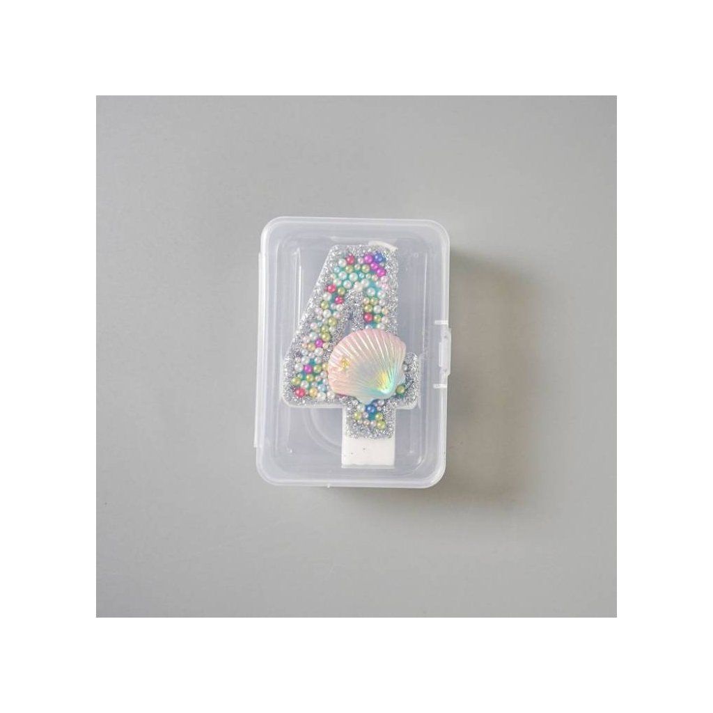 Svíčka s perlami a mušlí Oceán číslo 4 ▹