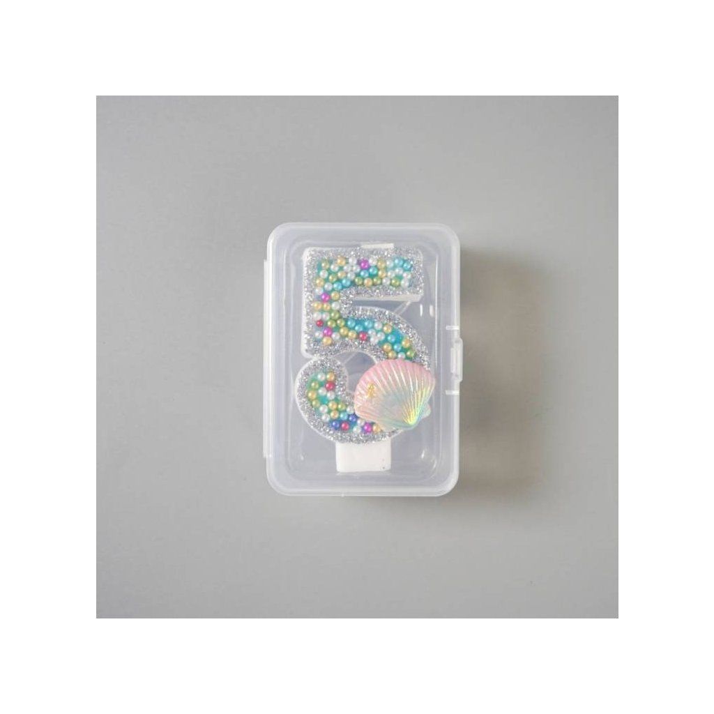 Svíčka s perlami a mušlí Oceán číslo 5 ▹