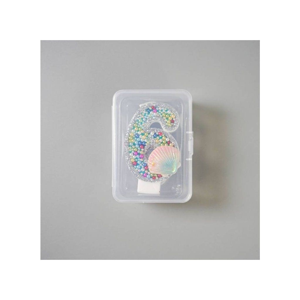 Svíčka s perlami a mušlí Oceán číslo 6 ▹