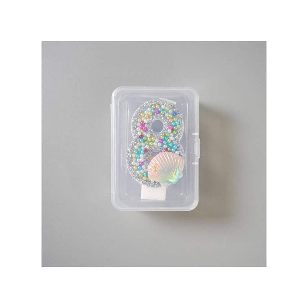 Svíčka s perlami a mušlí Oceán číslo 8 ▹