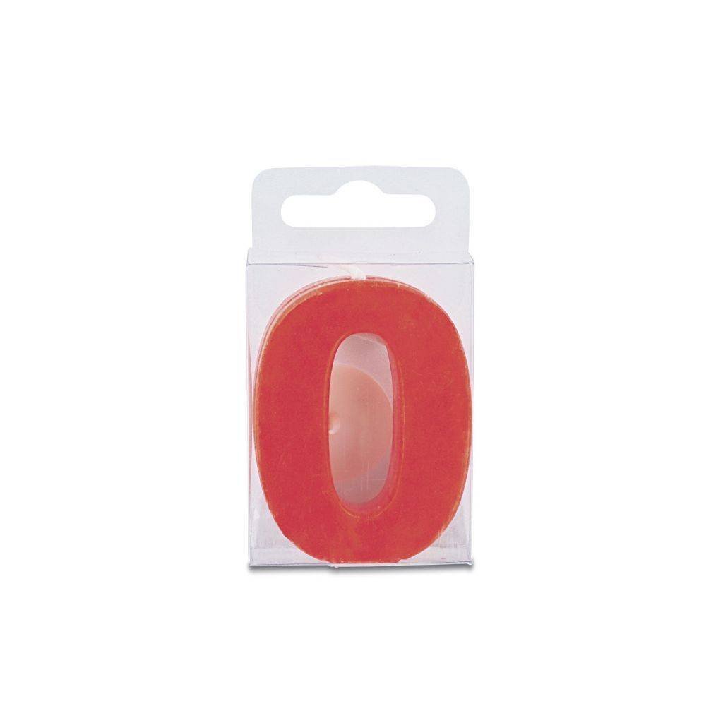Svíčka ve tvaru číslice 0, výška 4 cm, červená barva. Je vhodná především na narozeninový dort a zdobení podobných moučníků.Doplňkové parametry