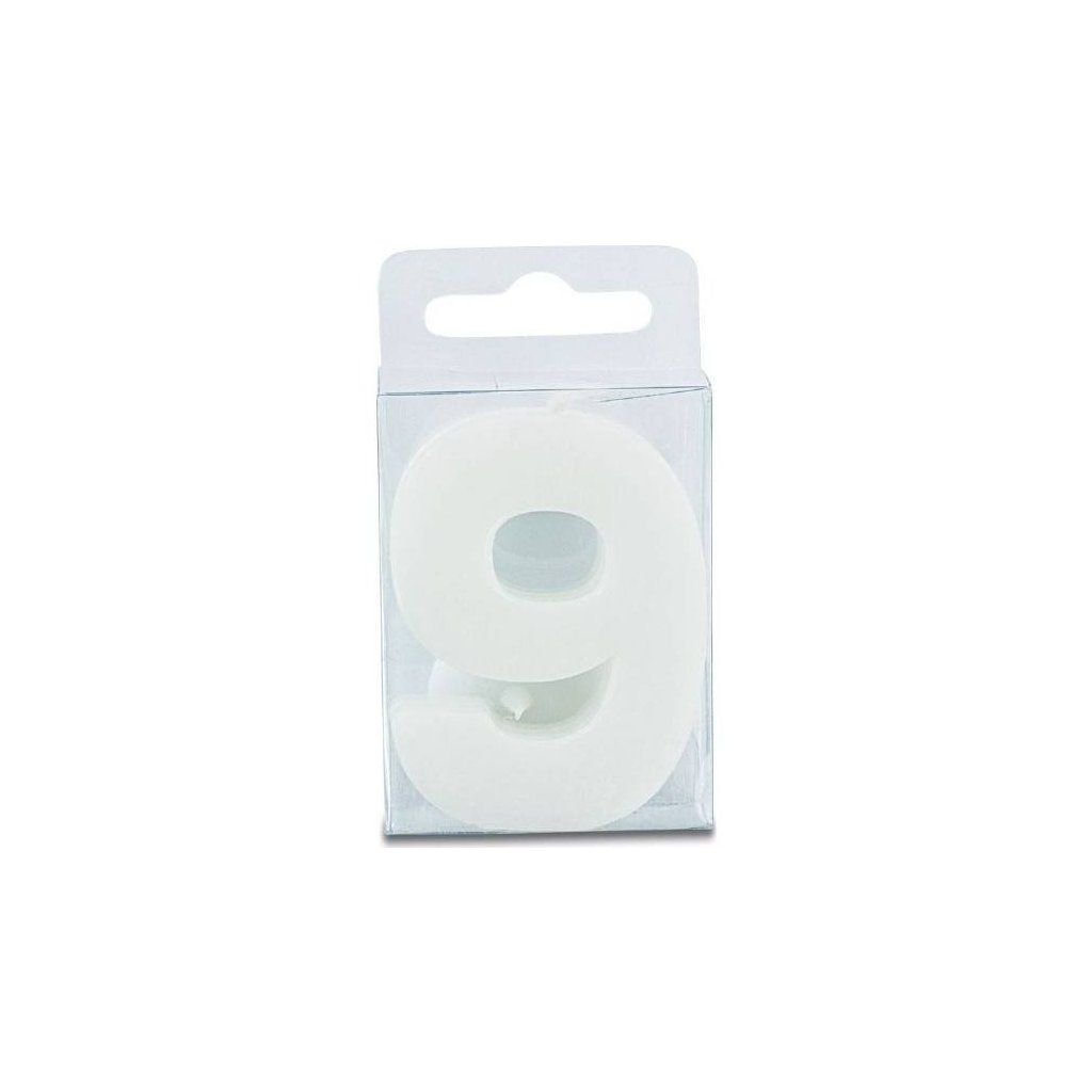 Svíčka ve tvaru číslice 9, výška 4 cm, bílá. Je vhodná především na narozeninový dort a zdobení podobných moučníků.Doplňkové parametry
