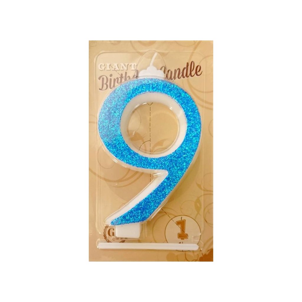 Svíčka velká modrá číslo 9 ▹