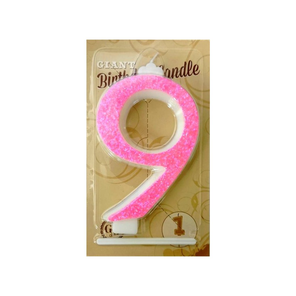 Svíčka velká růžová číslo 9 ♡