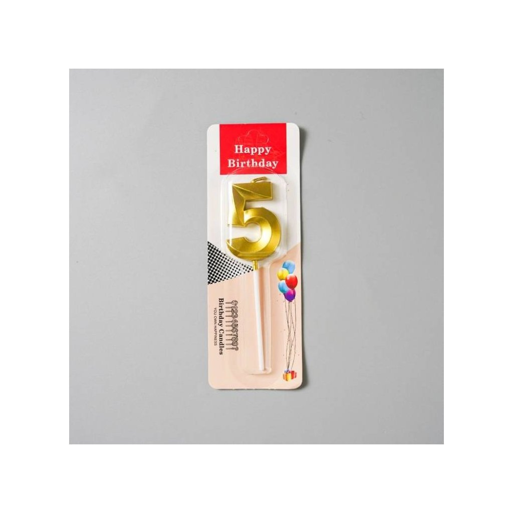 Svíčka zlatá číslo 5 ▹