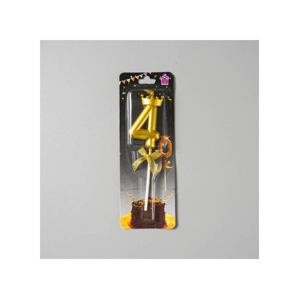 Svíčka zlatá s korunkou číslo 4 ▹