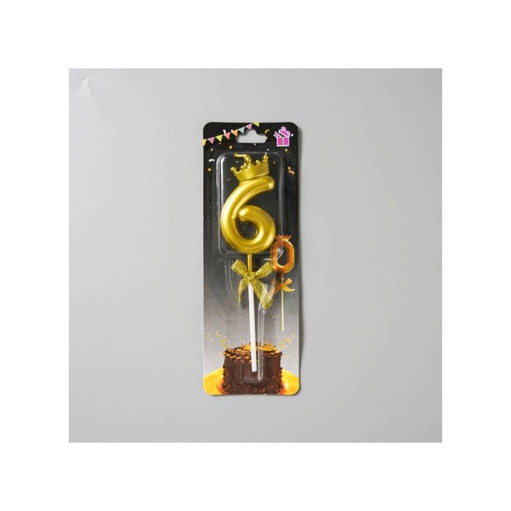 Svíčka zlatá s korunkou číslo 6 ▹