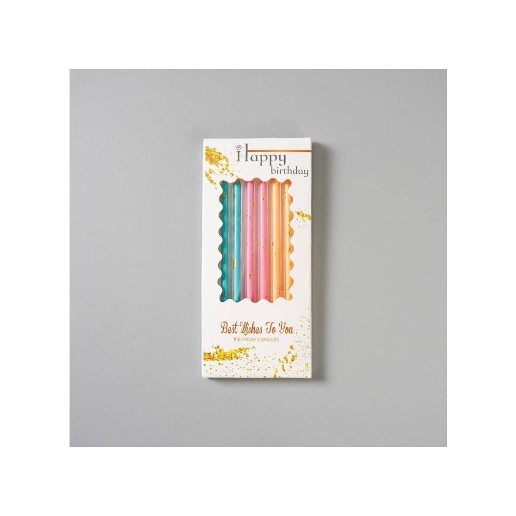 Svíčky barevné se zlatým zdobením (6 ks) ▹