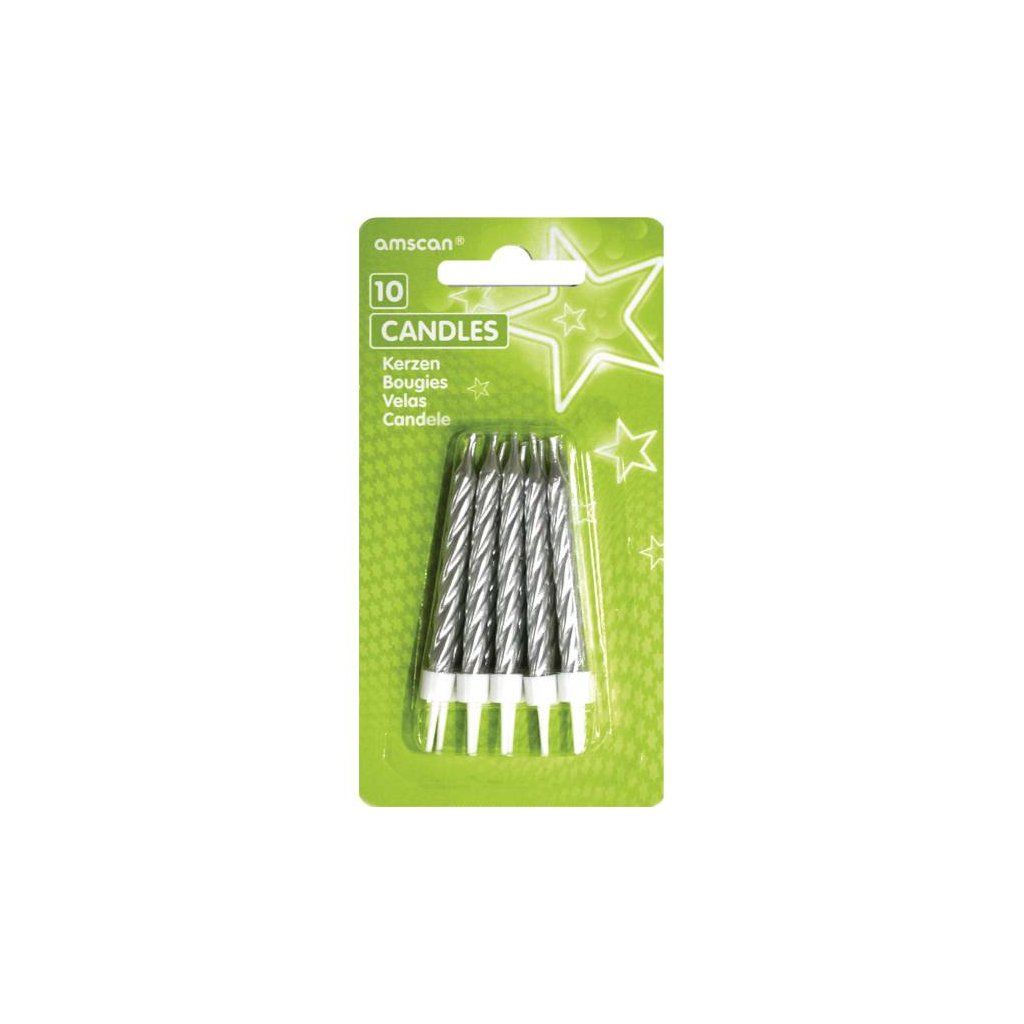 Svíčky dortové 6,3cm spirálové, stříbrné 10ks - Amscan | Cukrářské potřeby