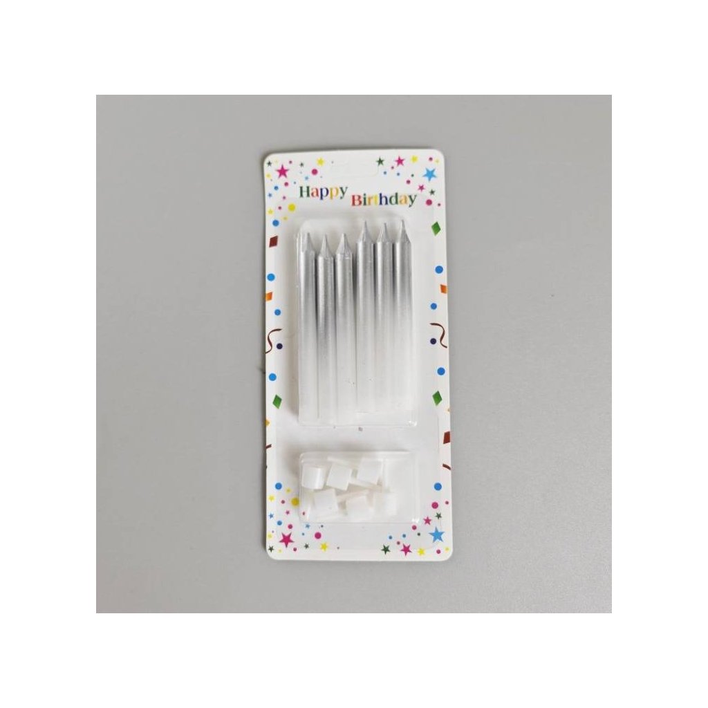 Svíčky Harmony stříbrno-bílé (6 ks) ▹