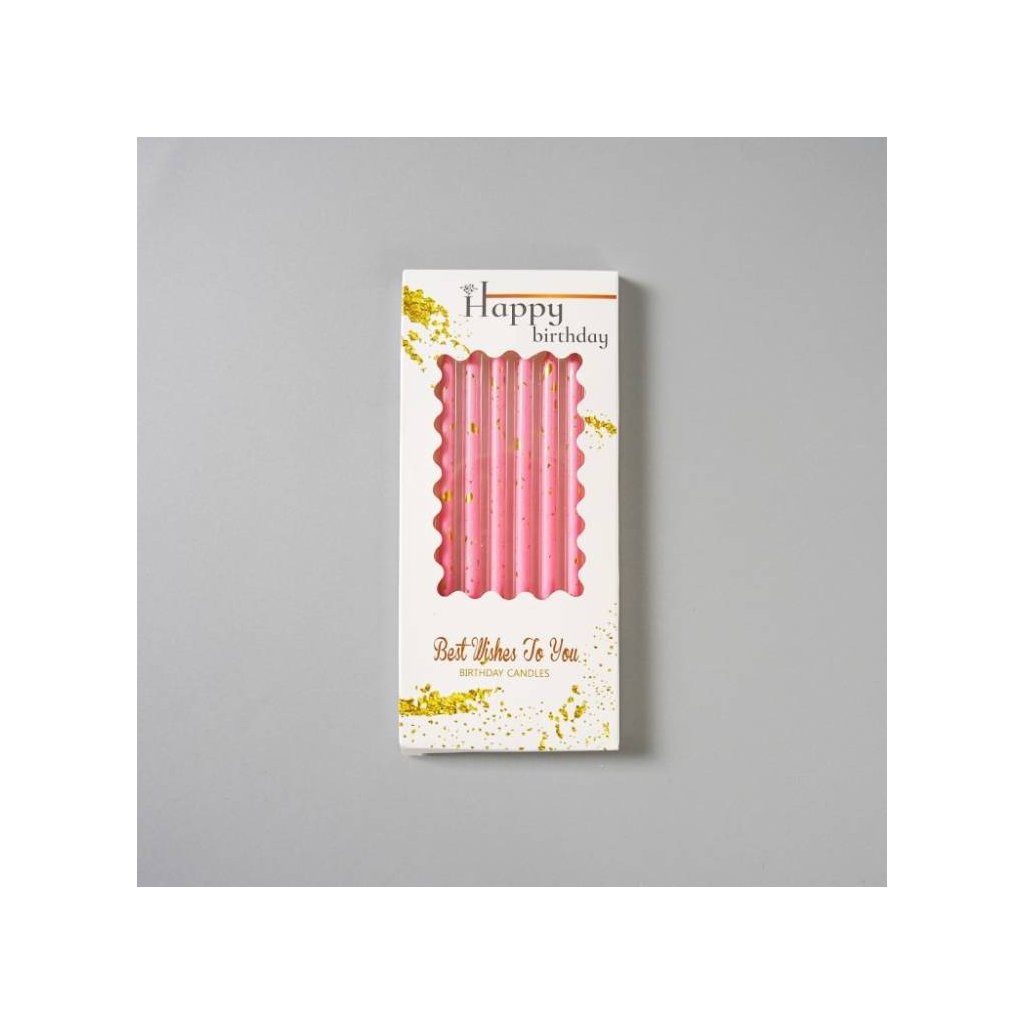 Svíčky růžové se zlatým zdobením (6 ks) ▹