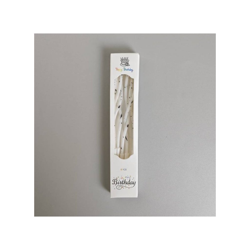 Svíčky spirálové bílé s černým zdobením (6 ks) ▹