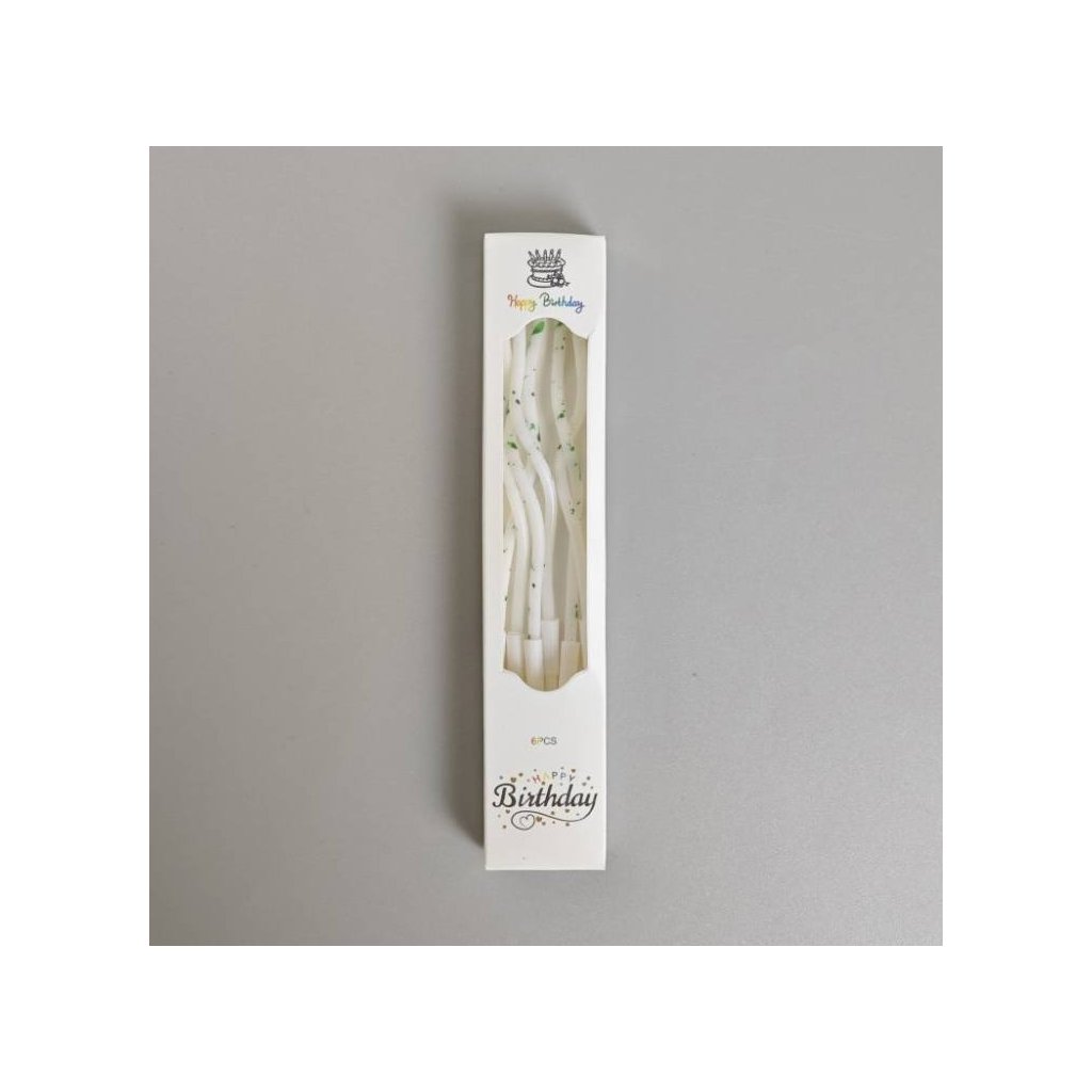 Svíčky spirálové bílé se zeleným zdobením (6 ks) ▹